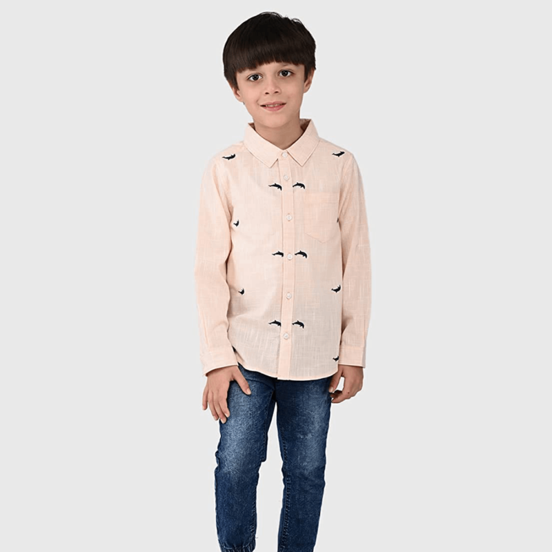 جونيور بويز 100٪ قطن عادي بقصة كاملة الأكمام قميص مطرز
