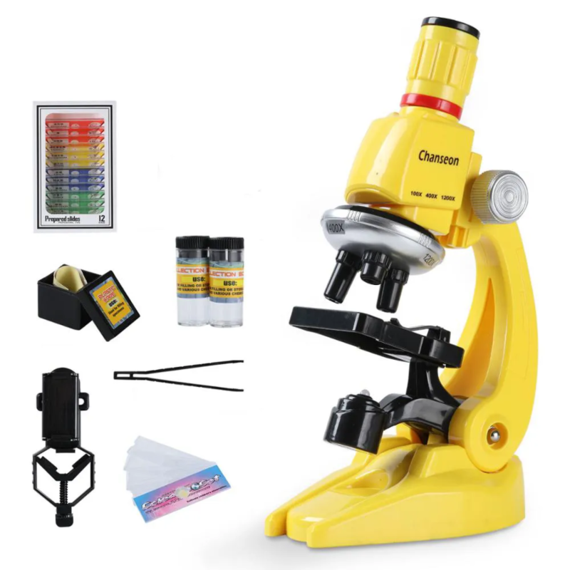طقم مجهر علمي مع LED 100/400 / 1200x مع شرائح للمبتدئين