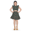 بلوزة جورجيت Pinafore Georgette الخضراء الداكنة للفتاة مع مجموعة ملابس تنورة غير متماثلة
