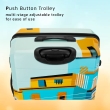 FEATURES : Number of Wheels - 4, Number Lock, No of Compartments -2, Adjustable Trolley, Hard Case Printed Design Trolley